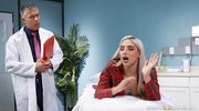 Беленькая штучка с шикарным телом подразнила врача и напросилась на страстный и жаркий секс прямо в больнице. Для начала сочная блондинка с длинными ножками насладилась куни и анилингусом, а потом начала сосать толстый член. После оральных ласк красотка отдалась в вагину, а следом и в тугую попку.
