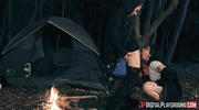 Развратная брюнеточка с большими сиськами соблазнила кучерявого парня и развела его на страстный секс прямо посреди леса. Сучка в татуировках встала на колени и дала трахнуть слюнявую глотку по самые гланды. Когда цыпочка вошла во вкус, она выпросила трах в мокрую пилотку, а потом кончила и от анального секса.