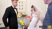 Цыпочка в свадебном платье легко возбудила свидетеля и, на время забыв о своем женихе, набросилась на толстый и длинный член. Сочная красотка с большими дойками получила член за щеку и облизала его, будто последний раз в жизни. Когда сучка закончила с минетом, она получила его глубокого во влажную киску и мигом достигла оргазма.