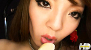 Японка с аппетитными формами решила использовать дары природы, чтобы попробовать себя в роли модели и стать популярной. Дамочка в нижнем белье устроила эротическое шоу и сразу начала показывать милое личико. Через секунду мадам засветила огромные сиськи, а потом обмазала себя взбитыми сливками и поигралась с бананом.