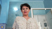 Бабушка решила совместить приятное с полезным и начала принимать душ и заодно баловать себя пальчиками. Сучка полапала себя за прелести и принялась мастурбировать влагалище. Когда предварительных ласк старухе не хватило, она качественно смочила резиновый член слюнями, а уже потом оттрахала себя до бурного оргазма.