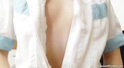 Чтобы отвлечься от проблем и работы, развратная и беленькая медсестра в сетчатых чулках решила пошалить прямо на работе. Блонда закрылась в кабинете и начала мастурбировать киску. Сначала сучка порадовала себя шаловливыми пальчиками, а уже потом облизала резиновый дилдо и трахнула им себя по всем правилам.