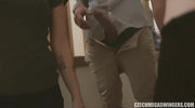 Пьяные друзья на дне рождения блондинки затеяли групповуху. Они меняли телочек, долбя их киски по самую матку, пока не визжали. Беременная сучка скакала на членах и отсасывала, кайфуя. Сперма залила её лицо, и она смаковала, глотая. Она кончила, дрожа от экстаза. Камера ловила её липкие щёки и стоны.