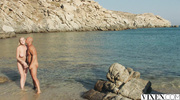 Сексапильная блонда уединилась с капитаном на берегу. Жгучая шлюшка подрочила его ствол и заглотила, пуская слюни. Он всаживал член в её волосатую киску, вертя в позах, пока она стонала. Её сиськи дрожали от толчков. Сперма брызнула на её тело. Волны шумели, а её бельё промокло. Похотливая дива упивалась оргазмом.