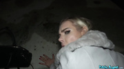 Беленькая красотка с большими буферами показала прелести и легко возбудила пикапера. Цыпочка напросилась на страстный секс и прямо на улице умело отсосала член. После слюнявого отсоса сучка перебралась в машину, где смело отдалась во влажную пилотку и кайфовала от секса в разных позах, пока не заработала бурный оргазм.