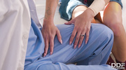 Озорная блондиночка жаждет новых ощущений и зовёт к себе врача. Её пышная грудь и игривый взгляд не оставляют мужчине шансов — она медленно раздевается, балует его глубоким минетом, а потом с восторгом впускает в себя и в тугую попку. Смотри, как страсть разгорается до предела, а финал — горячий поток наслаждения на её алчном теле. Этот ролик сведёт тебя с ума и заставит мечтать о собственном приёме у такой развратной пациентки!