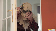 Мужик в страшной маске напугал брюнеточку, а потом извинился, сделав ей куни и анилингус. Этого горячей штучке показалось недостаточно и она тут же оседлала толстый член влажной пилоткой. Скоро и этого дамочке не хватило, а поэтому она согласилась еще и на трах в тугую анальную дырочку в самых разных позах.