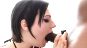 Телочка в сетчатых трусиках получила удовольствие от мастурбации и даже огромного дилдо в попке. После этого горячая брюнетка набросилась на настоящий член и смочила его слюнями. Закончив сосать негру, сучка дала трахнуть себя в разных позах и громко стонала, пока не достигла обещанного и долгожданного оргазма.