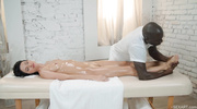 Красивая и худенькая брюнетка получила удовольствие от массажа, а потом начала сосать негру. Цыпочка хорошенько отработала ротиком, а после ответного кунилингуса дала оприходовать мокрую пилотку по самую матку. Сучка громко стонала от глубокого проникновения, пока не заработала яркий и долгожданный оргазм.