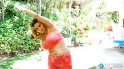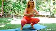 Аппетитная красотка с большими буферами сняла обтягивающие лосины и прямо во время йоги устроила эротическое шоу перед камерой. Спортсменка показала все прелести разом и тут же начала мастурбировать киску. Сучка получила нереальное удовольствие от шаловливых пальчиков и достигла яркого оргазма прямо во время съемки происходящего.