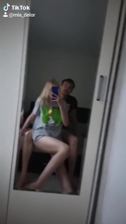 Симпатичная блондинка решила снять домашнее видео и начала позировать прямо перед зеркалом. Телочка с натуральными формами потерлась задницей об член парня, пока позировала, а через минуту разделась догола. Тогда цыпочка насадила мокрую пилотку на стоячий член и прыгала на нем перед зеркалом, пока не достигла оргазма.