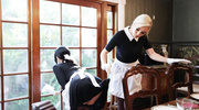 Во время работы сексапильные и горячие служанки решили немного расслабиться и пошалить. Красотки устроили лесбийский секс на хозяйской кровати и сразу начали баловать друг друга пальчиками. После мастурбации ненасытные штучки пустили в ход язычки и вылизывали сладкие киски в разных позах, пока не достигли долгожданного оргазма.