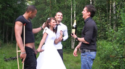 На шашлыках в лесу друзья решили отодрать невесту. Пока жених жарил мясо, она стонала, принимая один болт в рот, а другой в киску. Сучка встала раком, и они драли её очко и щелку, заставляя кричать. Двойное проникновение довело её до оргазма, а сперма залила рот и дырочку. Кремпай сделал свадьбу эпичной, утопив всех в кайфе.