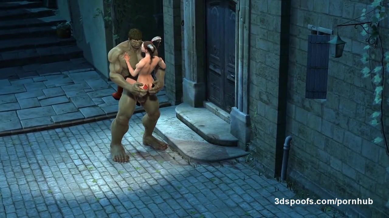 Огромный дракон имеет мелкую фурри в рот и в вагину