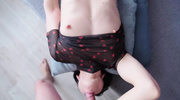 В спальне разгорается страсть, когда худая брюнетка в полупрозрачной футболке заманивает чувака. Она опускается на колени, заглатывая его стояк до основания. Слюни текут, пока она облизывает головку с аппетитом. Парень ставит её раком, вгоняя болт в тугое очко. Она стонет, сжимая стенки, пока он долбит с жаром. Переходя в миссионерскую позу, он углубляется ещё сильнее, доводя её до криков. Оргазм накрывает её, а тело извивается от кайфа. Сперма заливает её лицо, и она слизывает капли, утопая в наслаждении.