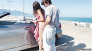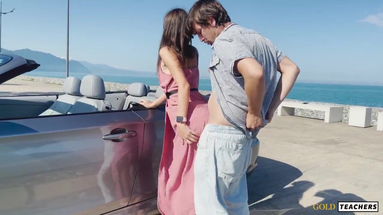 Худая брюнетка в платье дразнила парня на побережье, обещая секс за поездку на кабриолете. Она раздвинула ноги, позволяя его языку скользить по её щели, а затем он вогнал член, долбя с силой. Её крики эхом разносились по пляжу, пока оргазм не заставил её тело содрогнуться. Он кончил на её попку, а она, размазывая сперму, шептала о новой поездке.