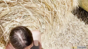 Худая брюнетка в коротком платье на сеновале дразнила парня, шепча о своём ротике. Она заглотила его ствол, хлюпая слюной, пока он не застонал. Камера от первого лица поймала, как сперма заливает её горло, а она глотала всё до капли. Девка, облизывая губы, мечтала о трахе в поле с толпой фермеров.