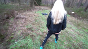 Парень заманил блондинку в лес и уговорил на секс. Она опустилась на колени, заглатывала его член и стонала, тёрла киску от возбуждения. Стянув лосины, крошка подставила вагину, кричала и извивалась, пока он долбил её. Она бурно кончила и слизала сперму. Телочка вытерла губы, подмигнув, довольная приключением.