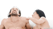 Азиатка смотрела порно и изучала позы секса, чтобы разнообразить половую жизнь. Когда качок вернулся с работы, малышка сразу набросилась на стоячий член и качественно облизала его. Чернявая штучка без одежды поработала ртом по всем правилам, а после ответного куни кончила от глубокого проникновения во влажную пилотку в самых разных позах.