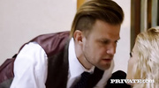 Препод развел красивую студентку и ее однокурсника на жаркий тройничок. Мужики поставили милашку на колени и заставили отсосать толстые члены. Когда беленькая сучка хорошенько отработала ртом, а сама насладилась ответными оральными ласками, она отдалась во влажную киску и тугую попку по очереди, а потом кончила и от двойного проникновения.