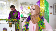 Красотка в хиджабе с волосатой киской и большой жопой не дождалась начала вечеринки и отдалась мужчине. Он резко вставил член в ее горячую вагину и начал долбить ее с грубой силой. Мужик пихал болт в ее щелку в бешеном темпе, заставляя ее кричать. Девка стонала, кайфуя от быстрого и грубого секса. Она кончила бурным криком, а он продолжил долбить ее до упора.