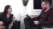 Татуированная брюнеточка с большими сиськами пришла на прием к психологу и получила заманчивое предложение. Дамочка напросилась на жаркий секс и прямо в кабинете психолога начала сосать член. Цыпочка смочила болт слюнями, а когда насладилась ответным кунилингусом, дала оттрахать мокрую и узкую пилотку до оргазма.