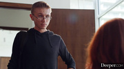 Рыженькая развратница в колготках связала мужика и принудила его к жаркой долбежке. Милфа сразу сделала из мужика послушного заложника и заставила его вылизать пилотку до блеска. После глубокого и ответного минета Maitland Ward отдалась во влажную вагину и трахалась в разных позах, пока не испытала яркий оргазм.