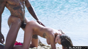 Негр уломал татуированную россиянку на секс у моря. Она жадно сосала его ствол, облизывая головку, пуская слюни. Он драл её киску в разных позах, давая пососать между толчками. Сучка визжала, оргазм захлестнул её. Сперма брызнула на губы. Кадры поймали липкие щёки и хрипы. В финале крошка слизала капли с пальцев.
