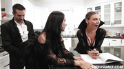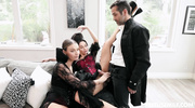 Жены в откровенных нарядах организовали групповой секс прямо в Хэллоуин. Цыпочки сразу пустились во все тяжкие и отсосали мужу, будто последний раз в жизни. Милфы качественно отработали ротиками, ненасытные красотки получили нереальное удовольствие от чувственного кунилингуса, а уже потом обильно кончили от глубокого проникновения в вагины.