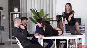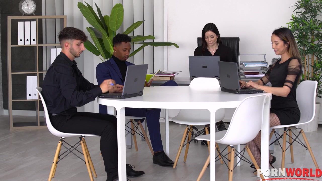 Начальницы не оставили подчиненным права выбора и принудили их к групповому сексу прямо в офисе. Сначала озабоченные сучки порадовали друг друга пальчиками и язычками, а потом начали сосать любовникам. Хорошенько отработав ротиками, цыпочка выпросили трах в попки, а потом даже обильно кончили от двойного проникновения.