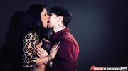 Брюнеточка в чулках показала большие и силиконовые сиськи и легко возбудила очкарика. Милфа нарвалась на страстный секс и для начала умело отсосала член. После слюнявого отсоса чернявая штучка в возрасте отдалась во влажную пилотку и позволяла иметь себя в разных позах без остановки, пока не получила оргазм и сперму на лицо и дойки.