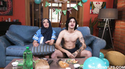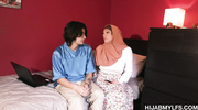 Жопастая мачеха-милфа в хиджабе устроила инцест с пасынком. Она нарочно показала свою волосатую щелку, возбуждая парня. Он с жадной страстью загнал член в ее влажную вагину и начал долбить ее с бешеной силой. Мамка громко стонала, тряся своей большой задницей от каждого толчка. Он продолжал вколачивать ствол, пока она не кончила бурным криком, а он разрядился в нее мощным камшотом.