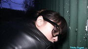 На улице пикапер подкатил к студентке в очках, предложив деньги за трах. Она заглотила его член в машине, пуская слюни, а затем встала раком, подставляя влажную киску. Он всаживал ствол от первого лица, заставляя её кричать от бешеных толчков. Её тело горело, а стоны гремели в салоне. Сперма хлынула внутрь её киски. Стёкла запотели, а её очки сползли. Похотливая крошка упивалась оргазмом.