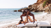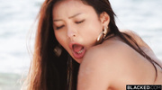 Rae Lil Black закончила плескаться в море и, сняв купальник, начала дразнить черного здоровяка. Грудастая азиатка легко возбудила негра и тут же начала работать ртом. Облизав стояк по всем правилам, малышка дала трахнуть розовую и бритую пилотку прямо на берегу моря, где и достигла яркого и бурного оргазма.