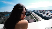 Худая брюнетка на балконе манит парня, оголяя худое тело. Его член входит в её влажную киску в POV, вызывая громкие стоны, которые заглушают шум города. Она впивается в перила, требуя глубже, пока её тело дрожит от толчков. Похоть бьёт через край, и она шепчет о риске. Оргазм накрывает её, а сперма заливает её живот. Брюнетка нежно гладит себя, смакуя публичный кайф.