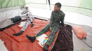 Аппетитная красотка с рыжими волосами подразнила двух мелких парней и организовала жаркий тройничок прямо в палатке. Рыженькая сучка с большой грудью встала на колени и отсосала обоим чувакам, как им и не снилось. Продолжая работать ртом и дальше, сучка выпросила трах во влажную пилотку и громко стонала, пока не испытала яркий оргазм.