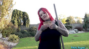 Цыпочка с красными волосами получила заманчивое предложение от пикапера и начала сосать толстый член за бабки. Аппетитная красотка взяла болт за щеку и замутила слюнявый отсос по всем правилам. После этого ненасытная штучка отдалась во влагалище и трахалась прямо перед камерой, пока не заработала яркий оргазм.