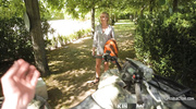 Мужик на время забыл о своей телочке, когда увидел сексапильную байкершу в коротких шортиках. Малышка с шикарным телом покрасовалась перед мужиком, а через минуту встала на колени и умело отсосала толстый член. Закончив работать ртом, брюнеточка дала оприходовать мокрую киску раком, а потом попрыгала на члене верхом.