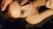 Рыженькая телочка не стала обращать внимание на включенную камеру и сразу начала работать ртом, лишь бы угоститься вкусной спермой, как и было обещано. Деваха заглатывала длинный член пор самые гланды и дополнительно работала ручками, тем самым доставив мужику еще больше удовольствия, а в завершении полакомилась спермой.