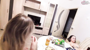 Стейси Старандо и подруга устраивают шоу для парня. Стейси заглатывает его член, пока подруга дрочит свою киску игрушкой. Губы хлюпают, вызывая хрипы, а смазка капает на пол. Подруга лижет сиськи Стейси, усиливая стоны. Они шепчут о разврате, ускоряя ритм. Сперма орошает лицо Стейси, и она делится с подругой. Похотливые сучки утонули в ЖМЖ. Комната зажглась от их кайфа.