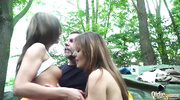 Девахи повелись на уговоры старого толстяка и отправились на пикник. Во время него старый извращенец развел крошек на ЖМЖ и дал им попробовать член на вкус. Малышки качественно смочили болт слюнями, а когда насладились ответным куни, по очереди отдались во влажные пилотки и заработали бурный и яркий оргазм.