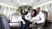 Частный самолёт становится ареной секса для стюардессы. Она берёт пенис клиента за щеку, а он вылизывает её киску. Чувак вгоняет ствол в её пилотку, а затем в попку. Телочка кричит, принимая его в разных позах. Оргазм накрывает её, пока она сжимает анал. Похоть доводит её до экстаза, когда сперма заливает её бёдра.