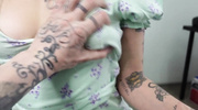 Тату-салон наполняется стонами, когда брюнетка в одежде флиртует с мастером. Она распахивает ноги, и он всаживает член в её мокрую киску, её вопли гремят, попка дрожит от толчков раком. Кожа лоснится от жара, она теребит соски, хрипя от кайфа, и шепчет пошлости. Звуки тел сливаются с её криками, влажность сочится по бёдрам. Камера фиксирует её стоны, оргазм сотрясает её тело. Сперма заливает её живот, и она, задыхаясь, смотрит с вожделением.
