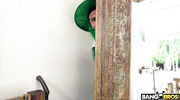 Лысый перец, наряженный лепреконом, раскидал деньги, заставляя красотку собирать их, виляя сочной жопой. Она нагнулась, и он шлепнул ее, требуя раздеться. Цыпочка подставила мокрую киску, и он долбил ее раком, стоя и на столе, пока она орала. Ее булки тряслись от каждого толчка, а она теребила себя, кончая от яростного траха без остановки.