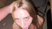 Мокрое желание овладело телочкой с брекетами, заставив её сосать длинный черный член. Милая штучка встала на колени, демонстрируя свою покорность. Она приняла стояк глубоко в рот, устроив слюнявый и продолжительный минет. Девушка работала ртом, как настоящая профи. Партнер громко стонал от удовольствия. Любовник не смог удержаться, и горячий семенной поток залил ей рот, а красотка проглотила финал, счастливо улыбнувшись.