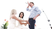 Перед алтарём страсть берёт верх: невеста и её подруга срывают с себя всё, чтобы вместе с женихом утонуть в вихре похоти. Два жадных ротика балуют его твёрдый член, а потом девушки с восторгом подставляют свои влажные щёлочки для безумного марафона наслаждения. Смотри, как свадебная ночь начинается ещё до церемонии — финал взорвёт твои фантазии и заставит мечтать о собственном тройничке!