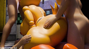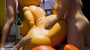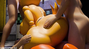 Аниматроник курица получает удовольствие от МЖМ, ей засаживают со всех сторон сразу два охранника