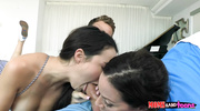Пышногрудая училка и юная брюнетка заманили мужа для ЖМЖ. Их губы заглатывали его пенис, слюни текли по стволу. Он пёр их киски по очереди, заставляя визжать. Камера снимала титьки, трясущиеся от толчков. Шлепки гремели, сучки тёрли клиторы, кончая. Сперма хлынула на их лица, и они делили кончу. Тройничок довёл их до экстаза. Девки млели, хихикая. Дом стал их секс-студией.
