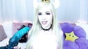 Красивая блондинка с короной на голове показала прелести в нижнем белье и чулках. Косплейщица немного покрутила попкой перед вебкой и тут же начала сосать резиновый член. Когда вебкамщица умело поработала ротиком, она оседлала огромный дилдо мокрой киской и громко стонала, пока не испытала бурный и яркий оргазм.