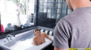 Смуглая красавица с роскошной грудью раздевается в ванне, её шелковистая кожа блестит от капель воды. Она медленно намыливает свои соблазнительные формы, не скрывая желания. Внезапно к ней присоединяется страстный мачо — его руки скользят по её телу, а упругие груди становятся ареной для горячих игр. Девушка с жадностью ласкает его член своими пышными буферами, а потом с восторгом впускает его глубоко в себя. Их тела сливаются в жарком сексе, стоны наполняют ванную, а финал — густой поток наслаждения на её алчные губки. Погрузись в этот пенистый вихрь похоти и почувствуй, как желание накрывает с головой!